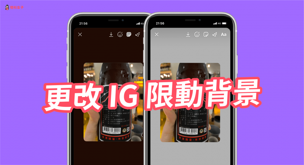 當我們上傳照片到 Instagram 限時動態上,背景顏色是取相近顏色自動生成,但有時候我們會想要自訂背景,改成自己喜歡的背景顏色,這當然是可以的。