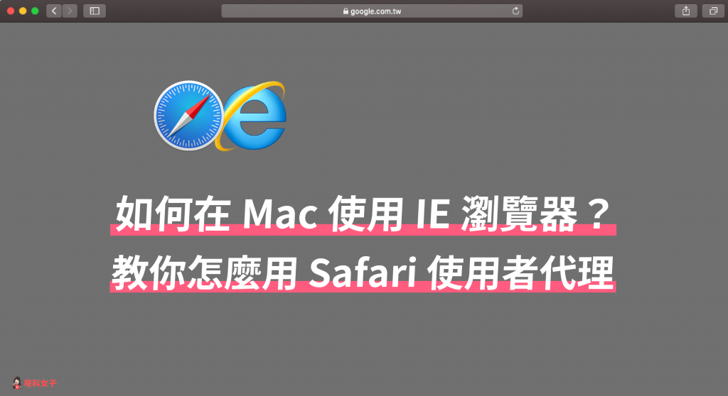 我自己也是遇到要在 Mac 開啟 IE 網頁時很頭痛,後來發現 Safari 可以幫我們解決這困擾,但我因為有更新 Mac,所以 Safari 使用者代理裡面沒有出現 IE 的選項,後來才找到要自訂字串,如果你跟我有一樣的問題,就可以用這種方法來解決喔!