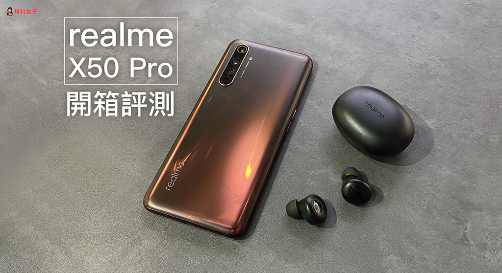 如果大家有注意首圖,應該會看到在手機旁邊還有一組無線耳機,這其實是「realme Buds Q 真無線耳機」,買手機時沒有附,而如果你有買 realme X50 Pro 的話可搭配購買。
