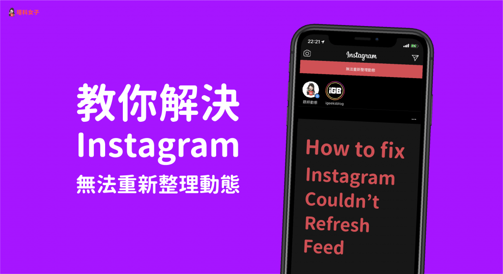 有時候當我們要載入最新的 Instagram 動態貼文時,會出現「無法重新整理動態」的提示,而其實造成無法更新動態、IG 跑不動、一直轉圈圈有好幾種不同的原因。
