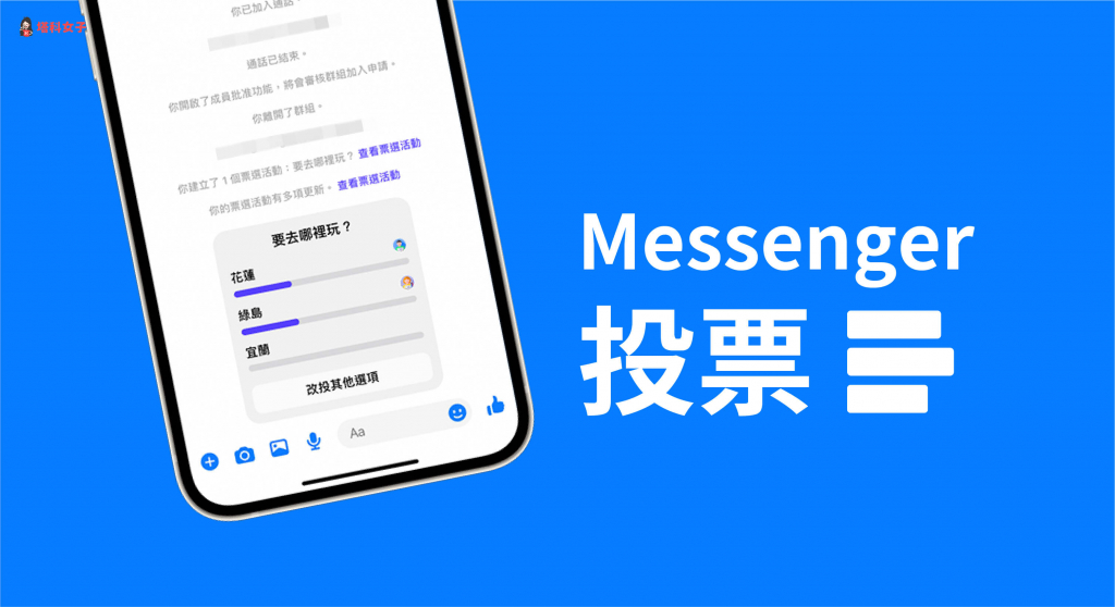 只要透過本文教學的方法就可以在 Messenger 群組內建立投票活動,讓大家針對某個主題來票選。