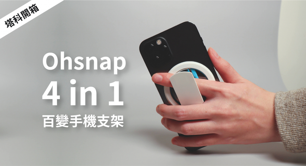 首先為大家介紹本次的主角:Ohsnap 4 in 1 手機支架,厚度只有 3mm,卻結合了指環扣、支架、磁吸、支援無線充電等四大特點。