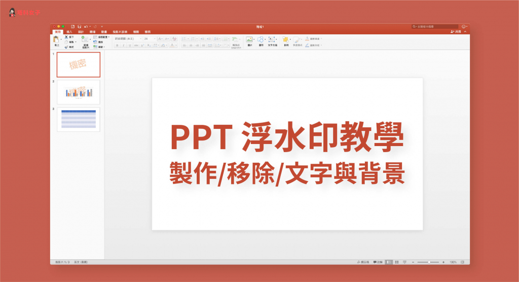 如果你想為自己的 PowerPoint (PPT) 投影片簡報新增浮水印的話,那麼可以透過本篇教學的「投影片母片」這方法來加入浮水印。