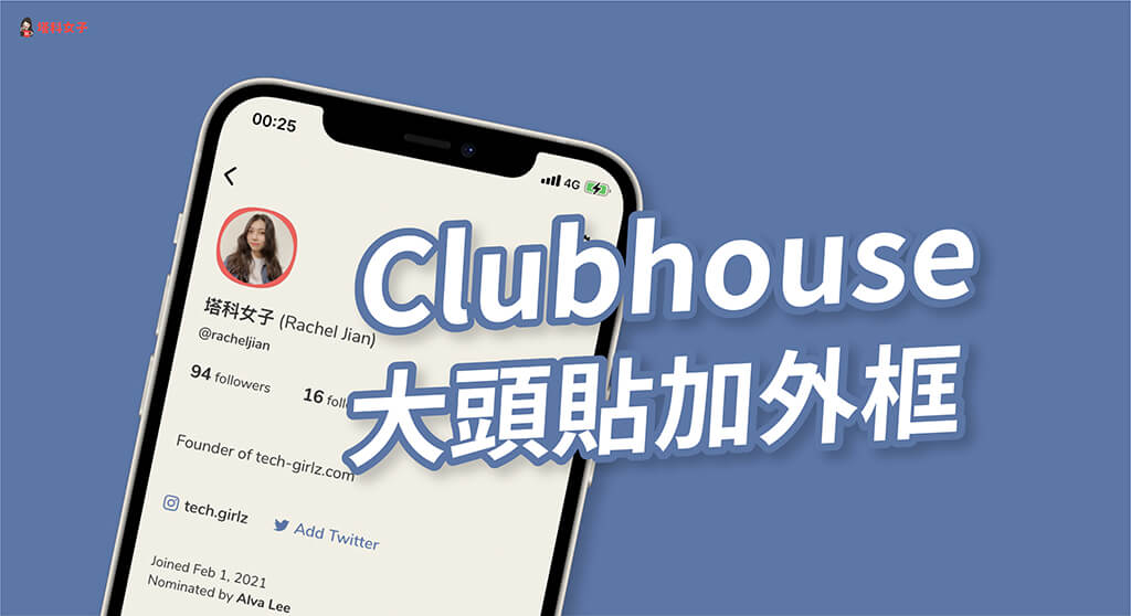 另外也歡迎大家追蹤我的 Clubhouse 帳號:@racheljian (或搜尋「塔科女子」)