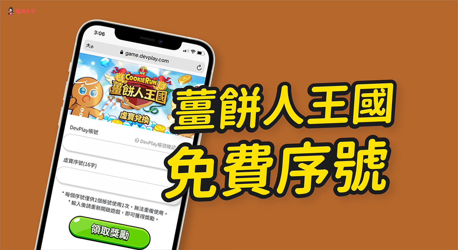 接著,開啟官方的「薑餅人王國虛寶兌換」網頁,然後依序輸入 DevPlay 帳號及虛寶序號,序號請參考本文上方的表格。