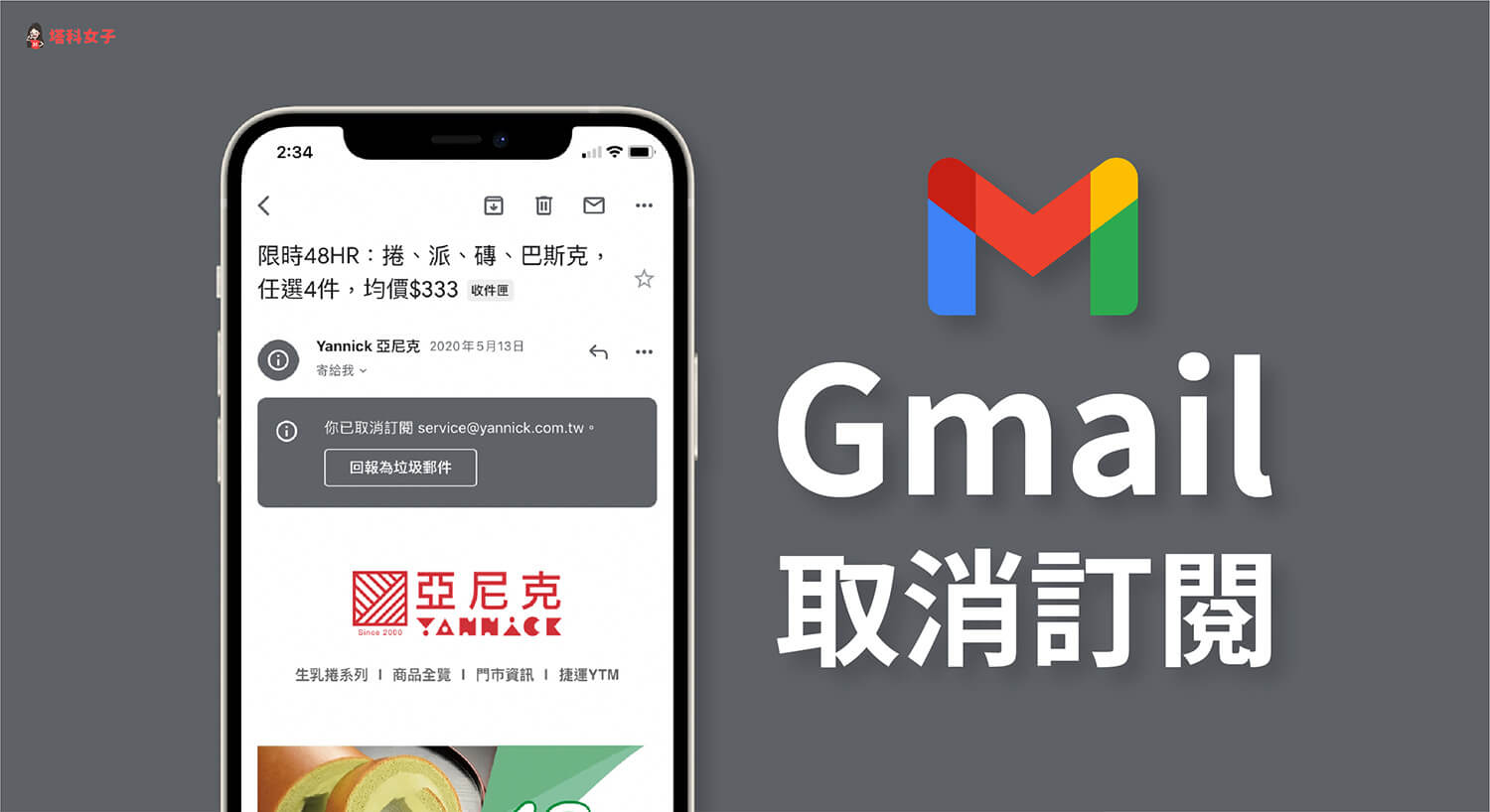 Gmail 有內建可以讓我們取消訂閱電子郵件的功能,請依照以下步驟操作: