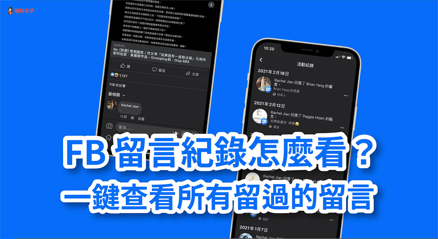 當我們看到有趣的 Facebook 貼文或影片時,有時會在該則貼文下方留言互動。而如果你想刪除或編輯自己留過的 FB 留言,卻臨時找不到的話,其實我們可以使用 Facebook 內建功能來找出所有自己留過的 FB 留言紀錄。