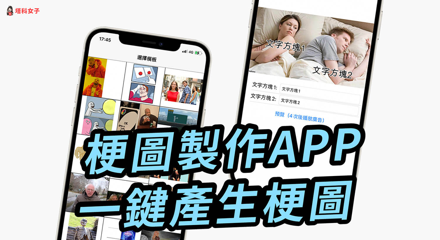如果你也想快速完成梗圖製作,懶得自己後製的話,那只要下載並使用這款免費的梗圖產生器 App,就能在選擇梗圖模板並輸入文字後一鍵產生梗圖,節省許多時間。