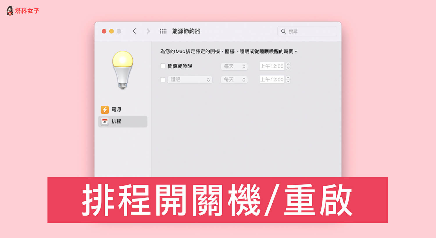 我們不需要下載其他應用程式,只要使用 Mac 內建的「能源節約器」就可以為 Mac 排程在指定時間喚醒、開機、關機、睡眠、重新啟動。