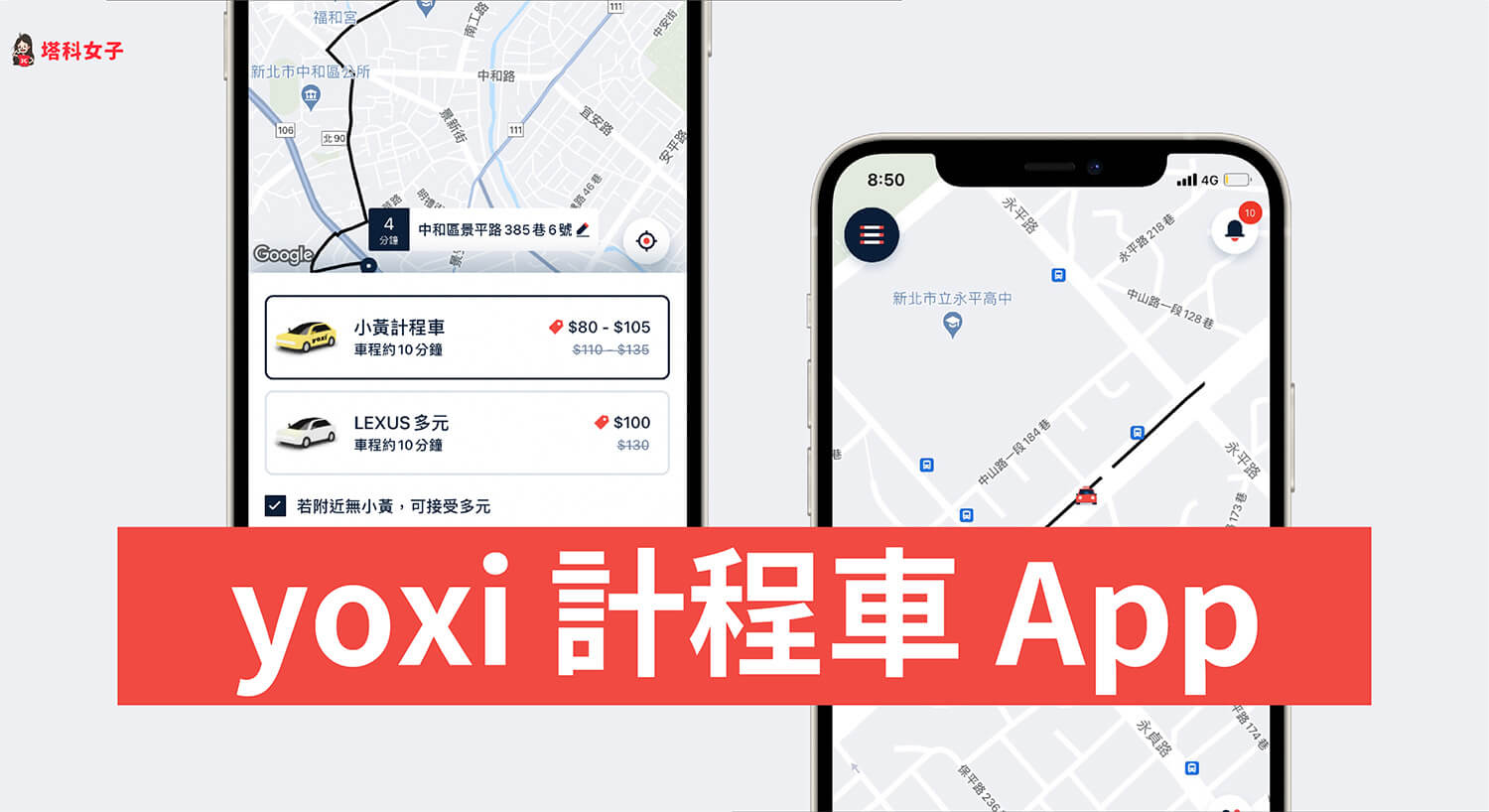 yoxi 是一款計程車叫車 App, 提供小黃計程車及多元計程車兩種叫車服務,yoxi App 使用方法跟 Uber 很像,都是直接在 App 內設定上車及下車地點,並等待司機到達後即可搭乘,付款方式則可以選擇現金或信用卡扣款。