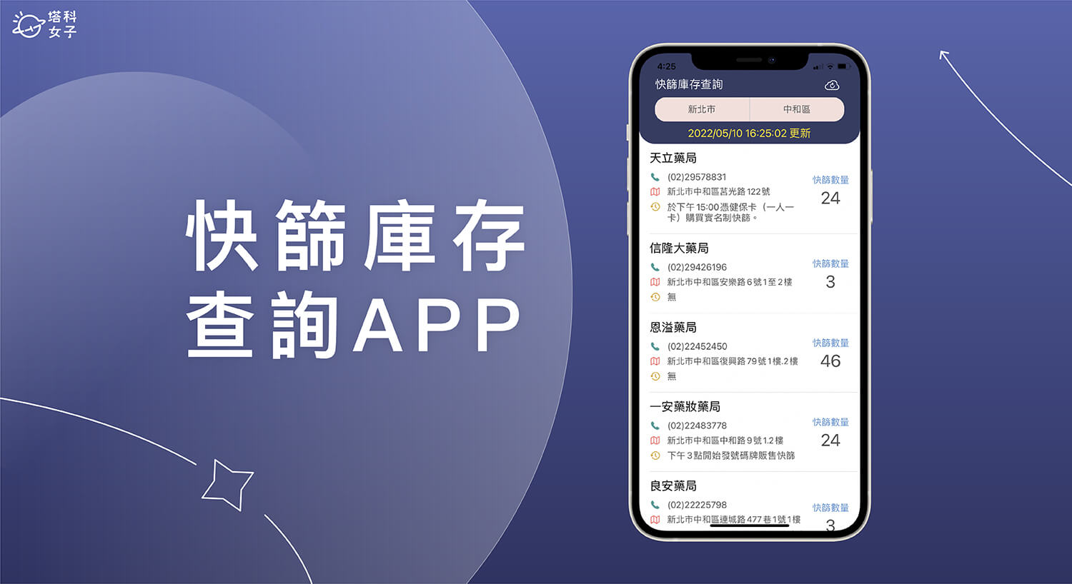 《台灣快篩庫存查詢 App》的資料來源為衛生福利部中央健康保險署,提供 iOS 及 Android 兩種版本,無廣告且使用方式簡單,不過庫存數量不一定 100% 準確,建議大家前往前先打電話詢問藥局最保險。