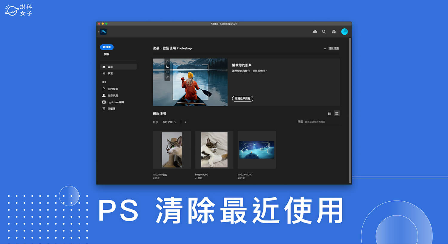 如果你跟我一樣不喜歡 Photoshop 首頁顯示雜亂的「最近使用」檔案清單,可以參考本篇教學清除並隱藏該功能,讓你的 PS 首頁更乾淨整齊。