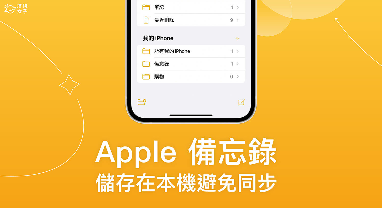 這時候我們不必大費周章地關閉 iCloud 備忘錄同步功能,可使用裝置內建的「本機備忘錄」,開啟備忘錄設定的「『我的 iPhone』帳號」選項後,它就會出現一個 iPhone 專屬的備忘錄分類夾,在裡面新增的備忘錄都只會儲存在本機裝置上,不會上傳到 iCloud 也不會自動同步,這方法也同樣適用在 Mac 及 iPad。