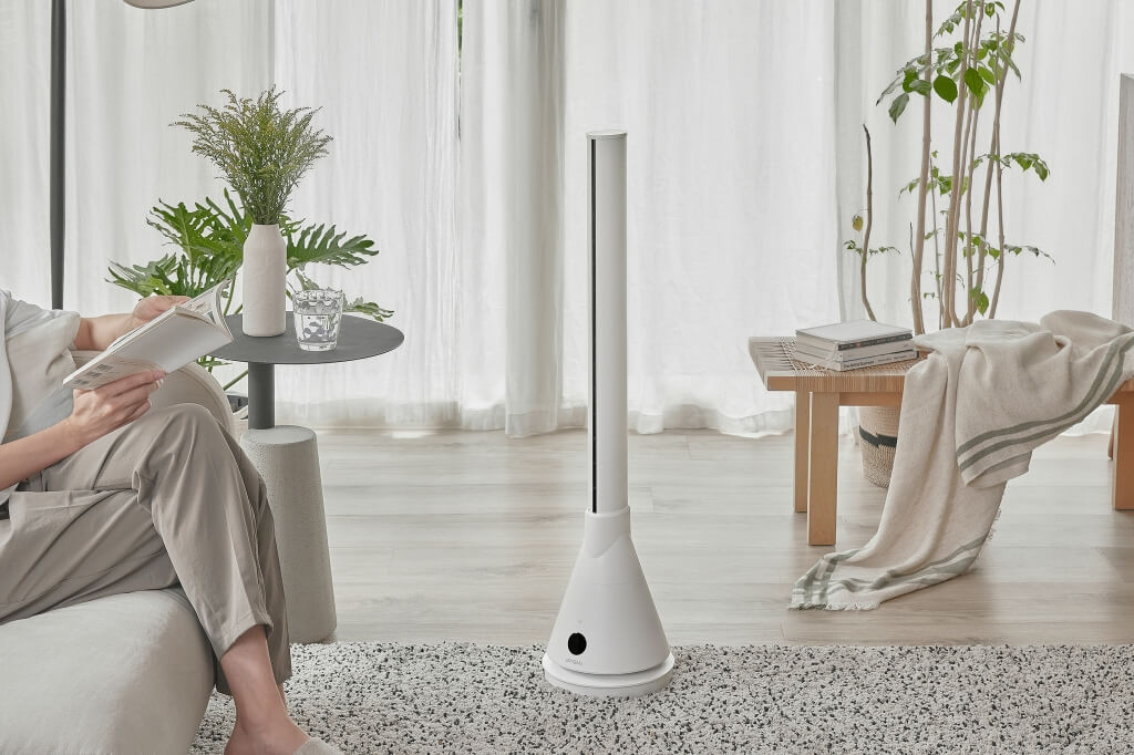 外觀設計以簡約時尚為基礎,表面採用消光材質增添低調質感,柔和舒適觸感彰顯整體溫潤氣質,採用「塔型直立式設計」讓未使用時也能靜靜地融入周邊環境,成為居家陳列一部分,增添空間俐落感。無葉片設計讓擁有毛小孩、小小孩家庭不必擔憂潛在風險,在滿足需求同時兼顧絕佳安全性。