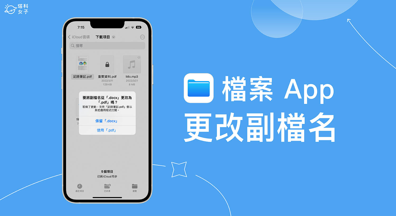 最後,iPhone 會出現一個小視窗問你是否確定要更改副檔名,這裡我們直接點選「使用」即可,這樣就成功更改 iPhone 檔案副檔名了!