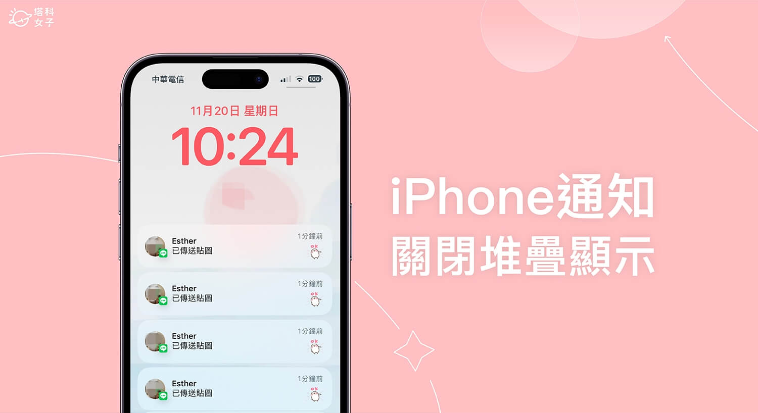 接下來我們分別教大家兩個方法,將 iPhone 鎖定畫面的通知關閉堆疊,避免自動分組,讓所有 App 或單一 App 完整顯示一則一則清楚的通知內容。