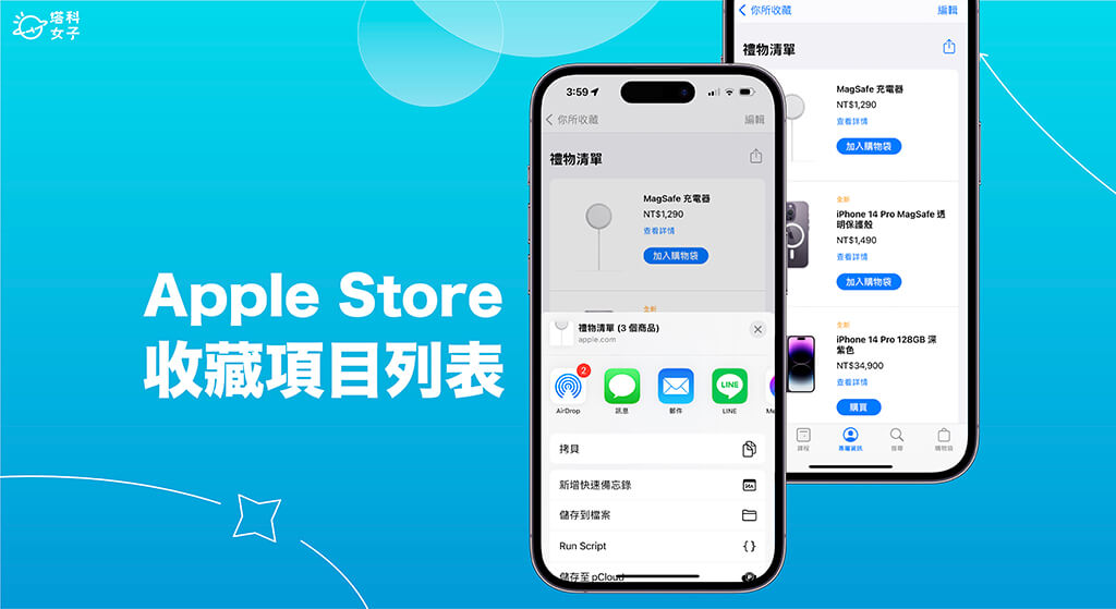 個人覺得這次的 Apple Store 收藏項目列表蠻方便的,讓我們可以將自己想買的 Apple 產品願望清單以「連結」的方式分享給家人朋友,裡面會清楚列出機型、顏色及規格,也能作為共享購物清單使用喔!