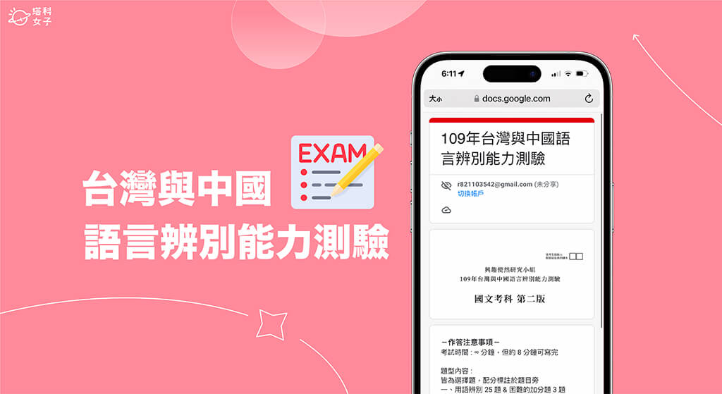 「109年台灣與中國語言辨別能力測驗」怎麼玩?