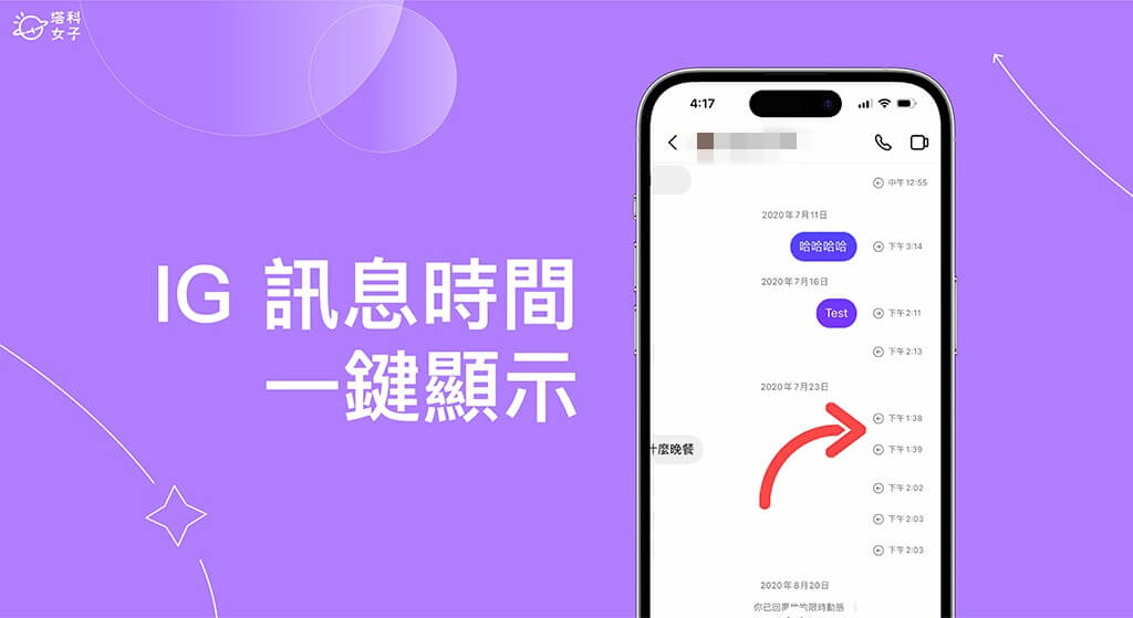 - IG 聊天室最右邊就會顯示每一則 IG 訊息時間,無論你是傳的還是對方傳的都會顯示時間。