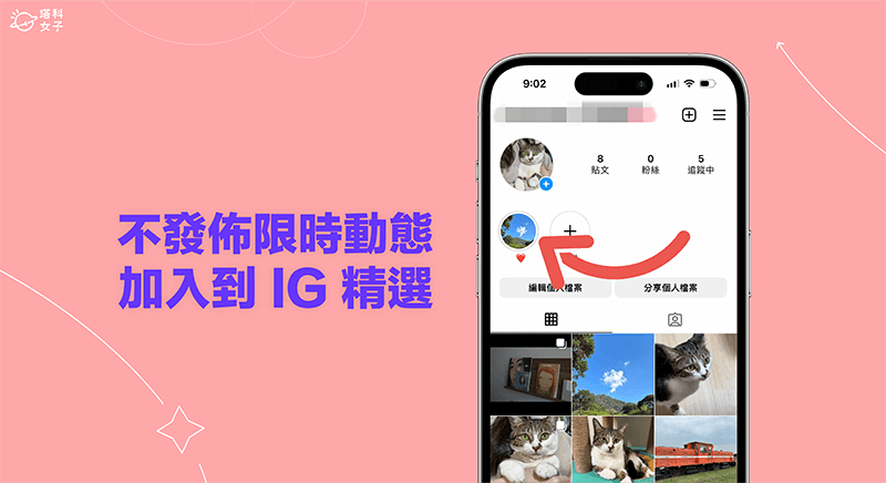 第三步驟,我們要將剛剛恢復顯示的該則限時動態加入到 IG 精選動態裡,這邊你可以選擇加入現有的精選動態,或者是建立一個新的精選都可以,