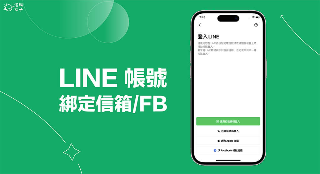 如果你也想為 LINE 綁定 FB 臉書帳號或是 Email 電子郵件,可以參考本篇教學的方法進行綁定與同步,這樣一來,我們就多了不同的 LINE 帳號登入方法。萬一臨時無法用手機號碼登入 LINE 時,就能選擇其他方法登入喔!