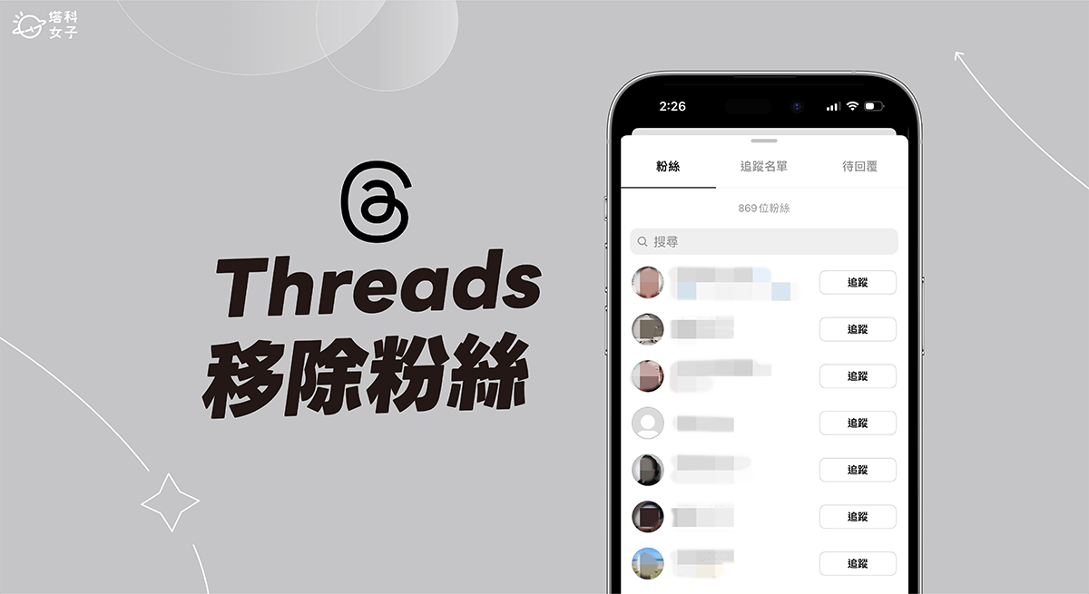 Threads 跟 Instagram 一樣,能讓任何用戶追蹤自己,而這些追蹤你的人又稱為「粉絲」,但很多用戶發現,當我們點進自己的 Threads 粉絲名單時,卻沒有出現「移除」按鈕,只有顯示「追蹤」,因此很多人想知道我們怎麼在 Threads 移除粉絲。