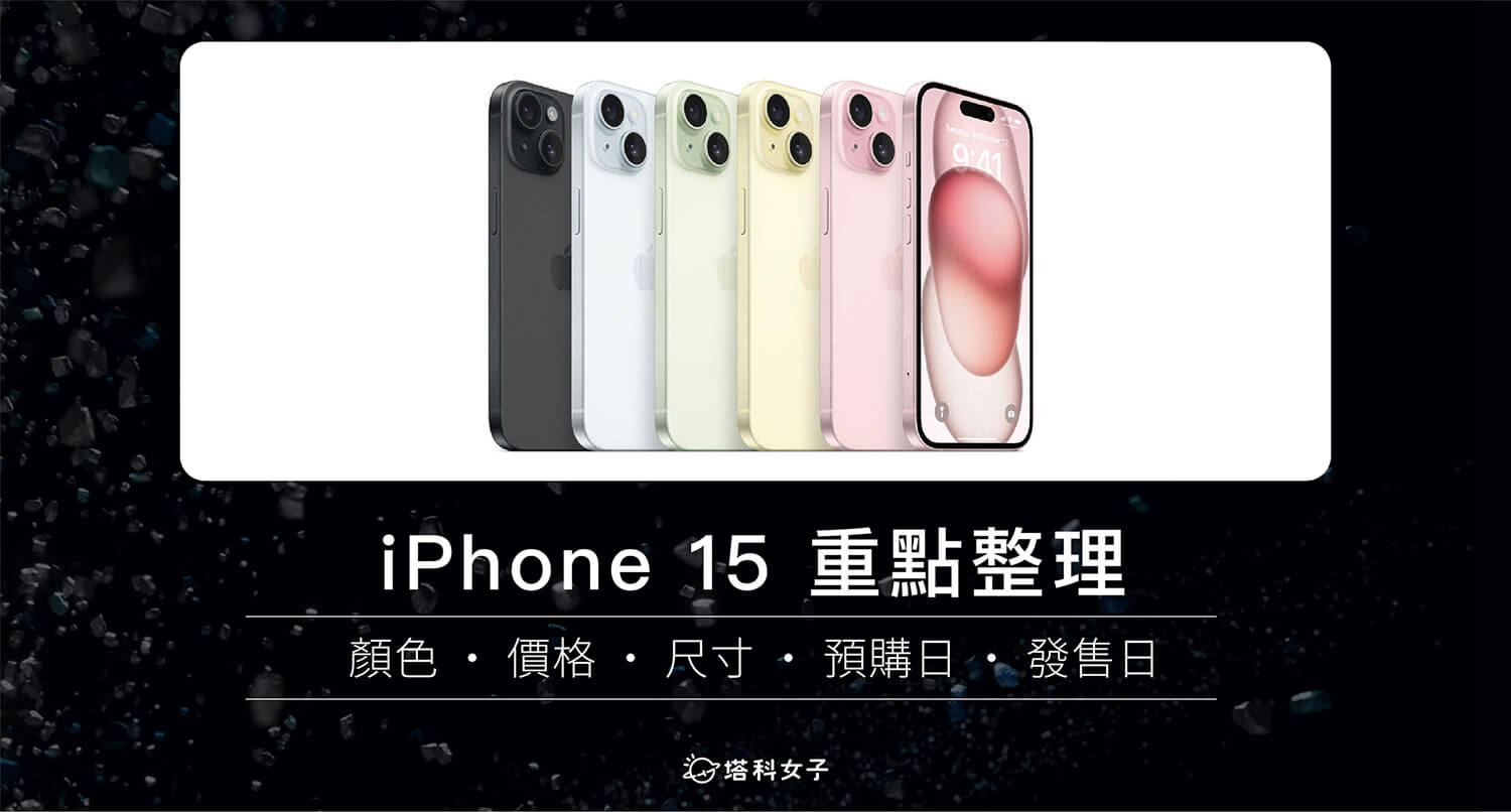 - 蘋果 iPhone 15 預購日期時間:2023 年 9 月 15 日(五)晚上 8 點