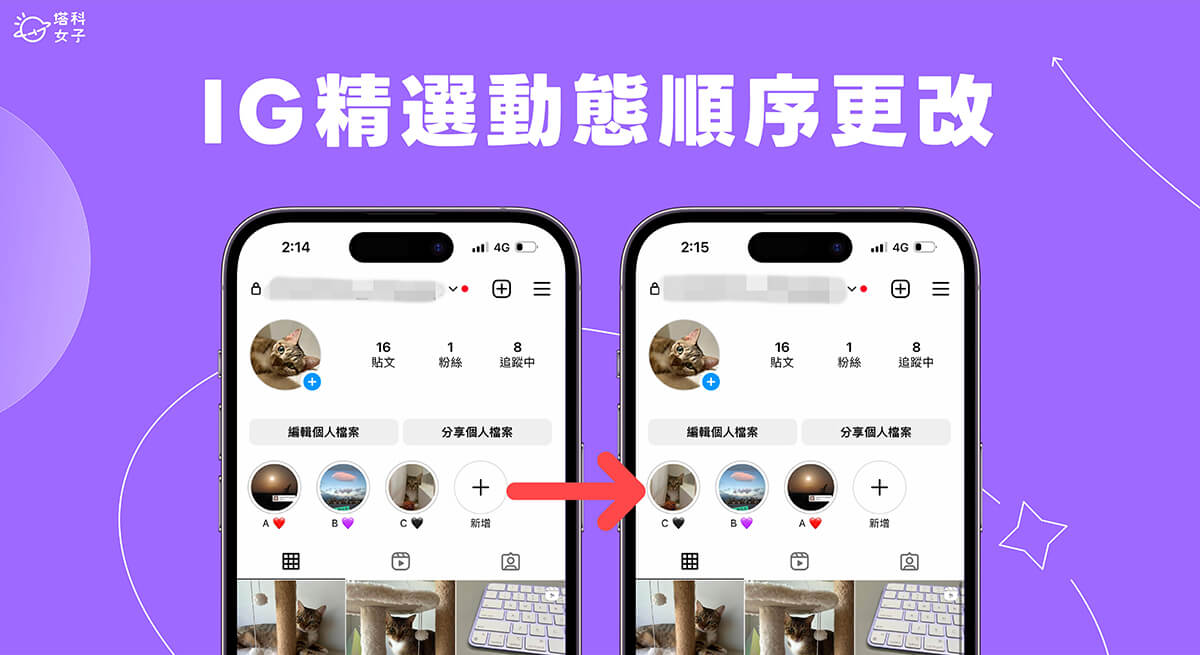 以上就是 IG 精選動態排序的更改方法,只要你有為某一個精選動態加入新的限時動態,那麼該精選動態就會自動被排列在 IG 個人檔案精選動態列表的最前面唷!