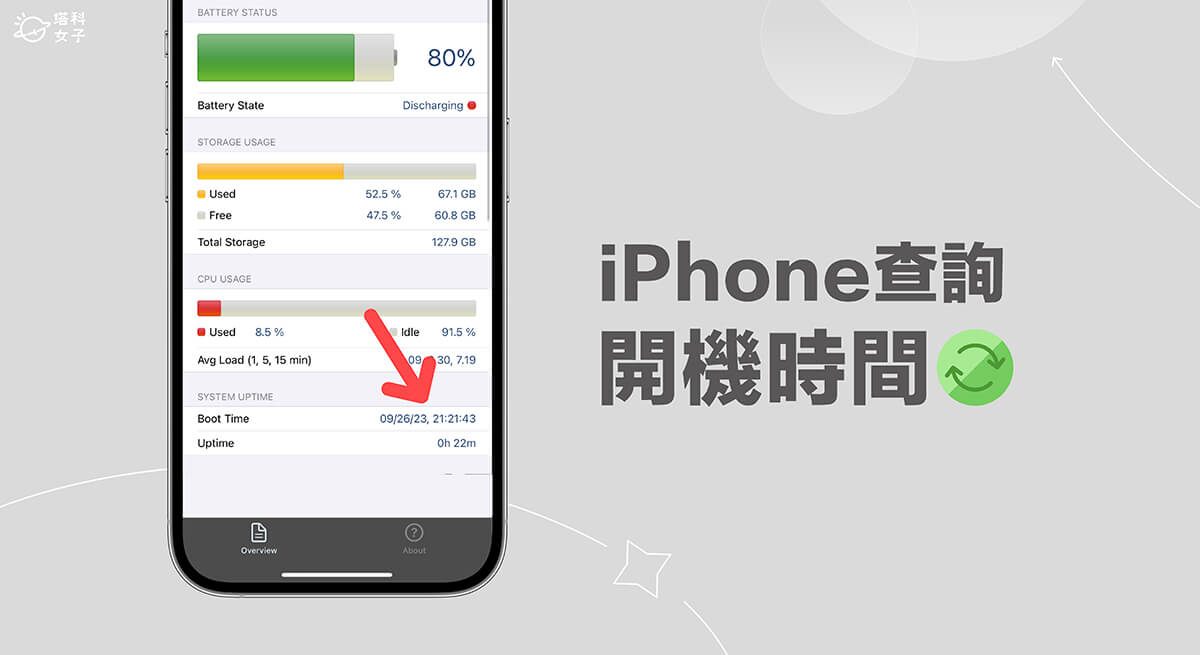 那我們有沒有什麼好用的 iPhone 開機時間查詢方法呢?雖然 iOS 內建沒有提供這項數據,但我們只要使用 System Status: hw monitor 這款 iOS 系統監測 App 就能快速查看上一次的蘋果手機開機時間是什麼時候喔!