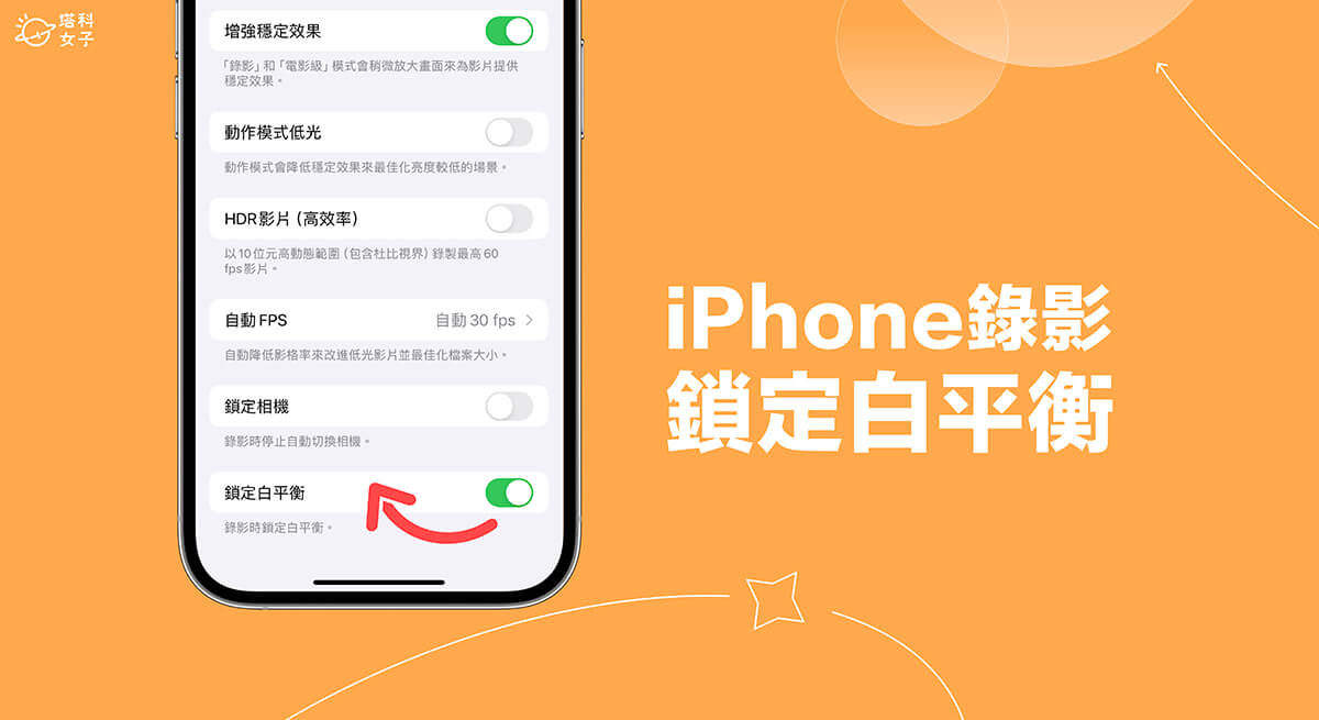 蘋果為 iOS 17 相機錄影功能加入了一項全新的「鎖定白平衡」選項,開啟 iPhone 相機白平衡後,可確保白色物體在影片中呈現白色,進而補償典型照明造成的任何色偏。