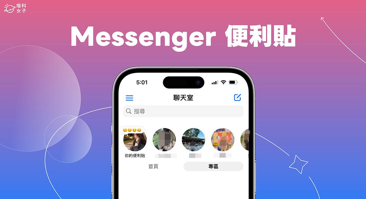 如果你只是單純想簡單分享一下自己目前的心情或想法,那可以使用 Messenger 最新的「便利貼」功能來抒發,這種以「文字」的方式表達自己當下的心情更簡單,也無需上傳照片或影片。
