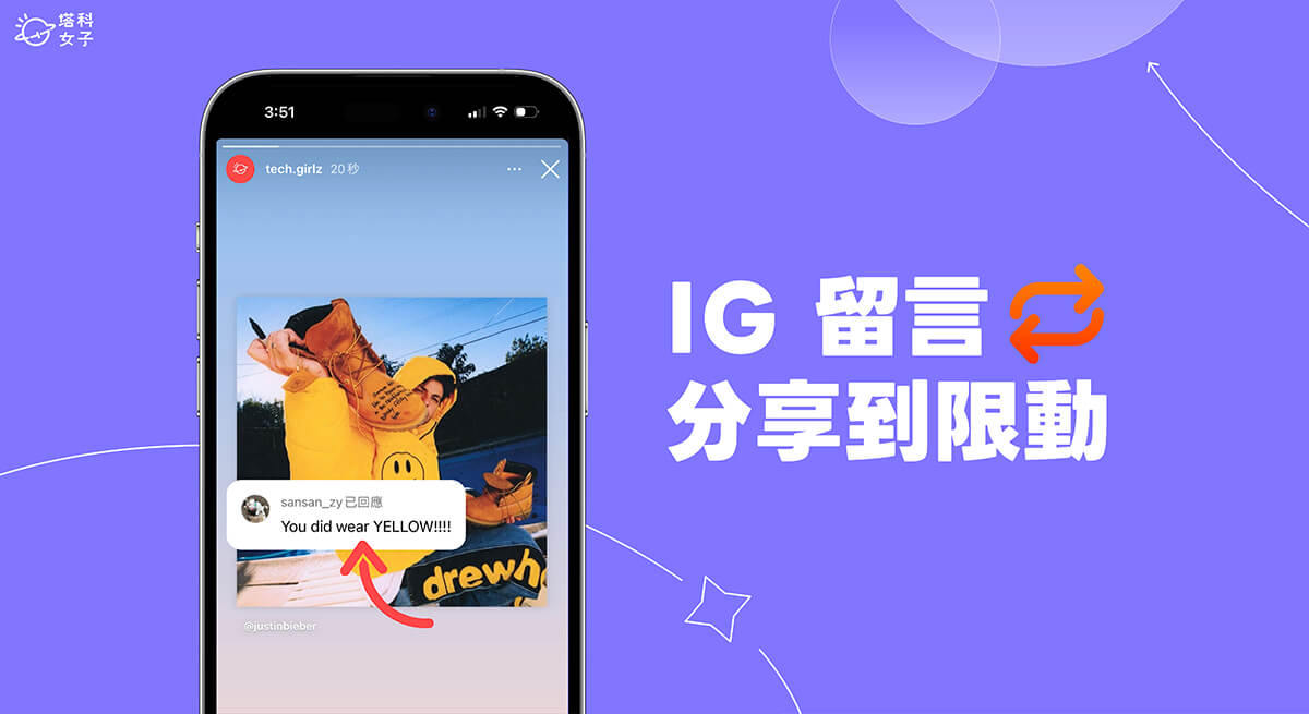 Instagram 近期又針對貼文和 Reels 影片加入了一項全新互動功能,讓我們可以將 IG 留言分享到限時動態上,分享後,在 IG 限時動態會看到「XXX 已回應」的貼圖形式,並顯示該則留言內容,背景還會呈現原始貼文或 Reels 連續短片,點擊後可以快速跳轉到該則留言或貼文/Reels 上。