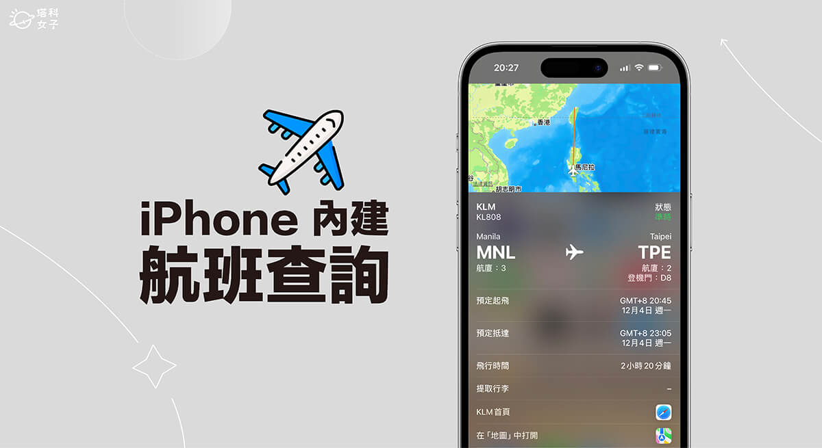 雖然在 App Store 中有許多實用的飛機航班追蹤 App,但其實我們也可以使用 Apple 內建功能快速在 iPhone 查航班喔!不僅可以查詢航班起飛與降落地點、航廈、登機門,也能看到是否延誤與延遲抵達時間。