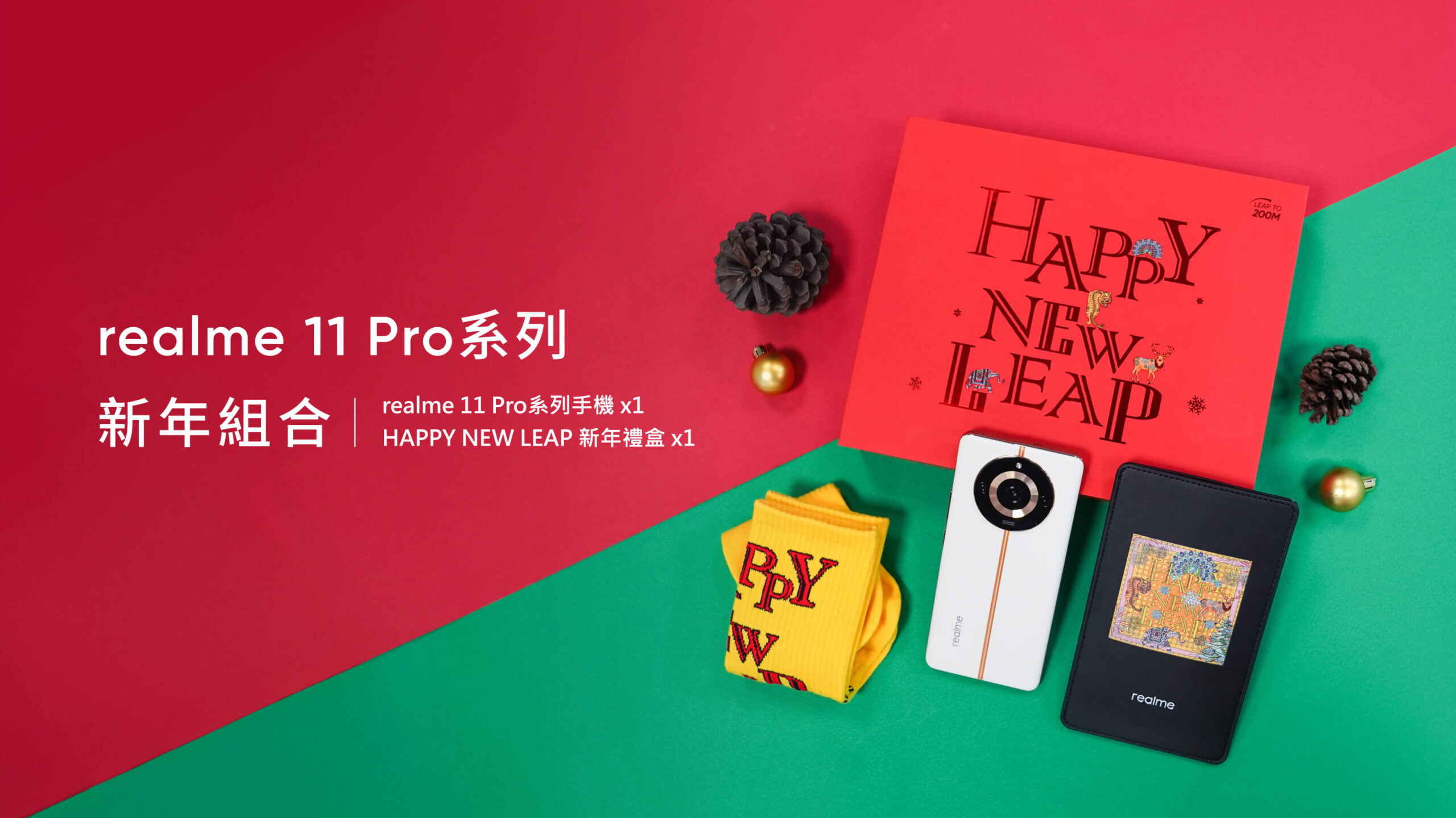 在重要的迎接新年之際,realme 當然也不忘初心,應景推出了《 HAPPY NEW LEAP 新年禮盒 》,內含精品級印花手機包,上面印有 Matteo Menotto 以四方吉祥物為靈感設計的訂製印花,以及符合聖誕主題的 HAPPY NEW LEAP 黃色聖誕襪。而《 HAPPY NEW LEAP 新年禮盒 》也將和 realme 11 Pro 日出之城組成限量精品組合,12 月 25 日搶先於 realme 網路商店正式開賣,組合價 8,812 元,限量 5 組,想入手的 real 迷們可千萬不要錯過。
