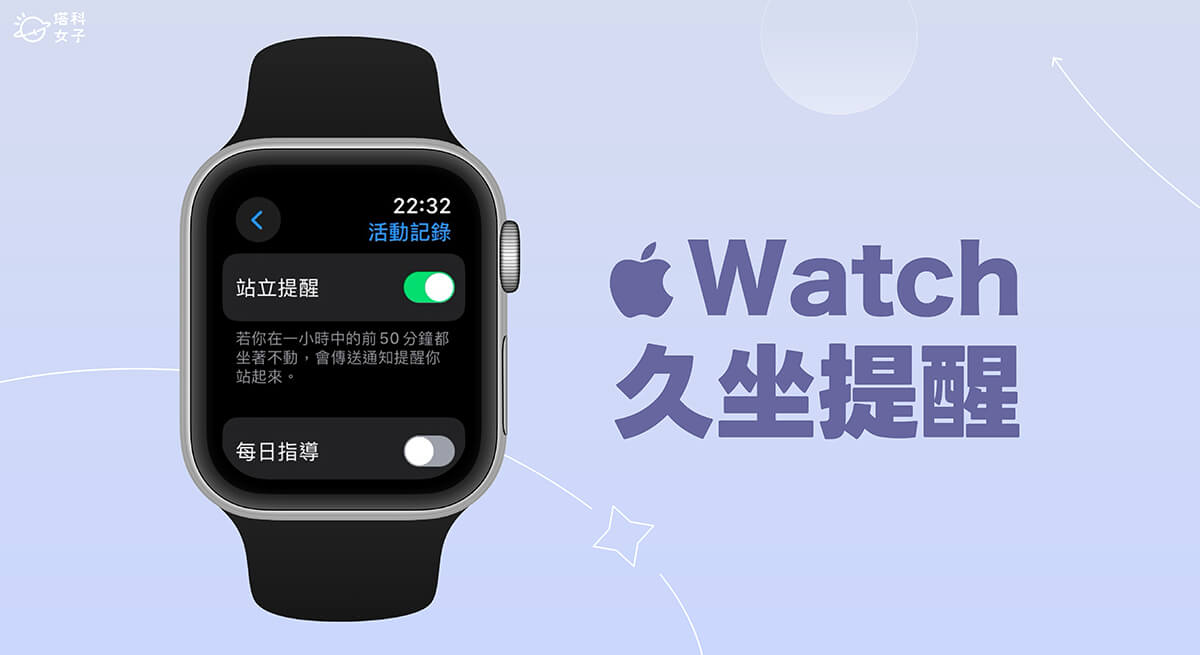 許多研究都證實,久坐不動是會危害健康的,甚至還會引發各種疾病,那如果你工作或是回家後常常一不小心就久坐,希望能提醒自己要多站起來走走,那現在我們可以仰賴科技的協助!只要開啟 Apple Watch 久坐提醒設定後,當你久坐超過一定時間時,Apple Watch 就會傳送通知提醒你該站起來動一動。