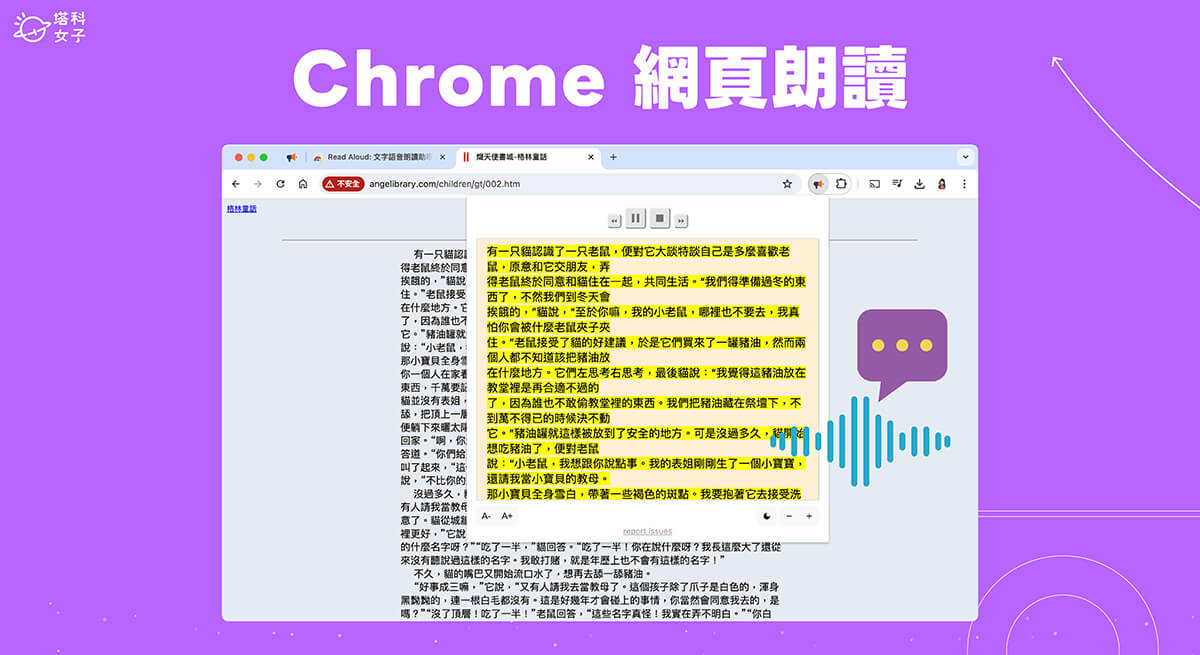 在一般情況下,我們通常都是用閱讀的方式來瀏覽網頁,但如果你有找到長篇幅的故事或是小說,希望能用「聽」的來聆聽網頁內容,那推薦大家使用 Google Chrome 網頁朗讀功能,讓 Google 替你唸出網頁上的文字喔!這樣你就可以邊做其他事情邊聽內容,也能讓自己的眼睛稍微休息一下。