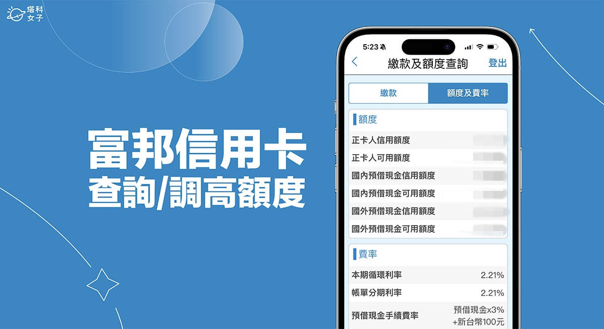 本文除了會詳細教你如何使用網銀 App 和網路銀行網頁版完成「富邦信用卡額度查詢」的需求外,也會教你快速在 App 為富邦信用卡調高額度!