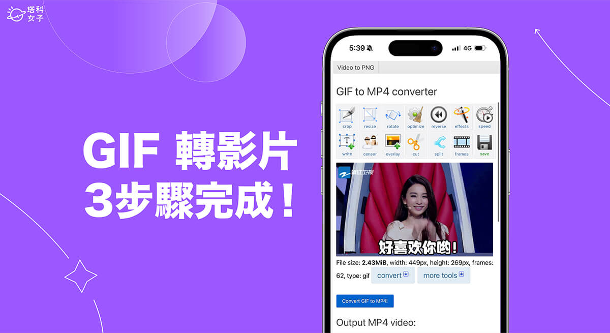 雖然我們大部分都是想將「影片轉 GIF」,但在某些情況下,你可能會希望能從「GIF 轉影片檔」,也就是將 GIF 動圖轉換為 MP4 影片,方便隨時傳送給朋友。