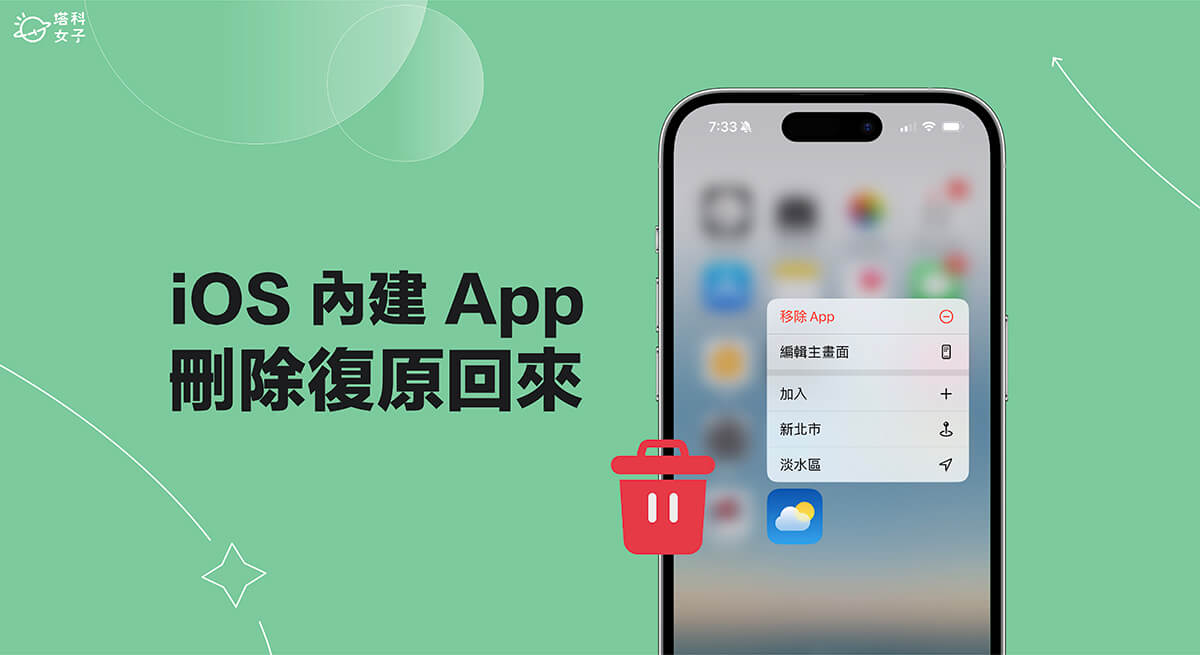 蘋果為 iPhone 提供許多內建 App,像是:天氣、時鐘、相機、照片、行事曆等等,其中有些內建 App 是可以刪除的,例如:時鐘、健身、測距儀等等,用不到的話刪除來釋放更多儲存空間,但有些人刪除之後發現後悔,或者之前是不小心刪除的,這時候其實我們可以快速將 iPhone 內建 App 刪除復原回來喔!