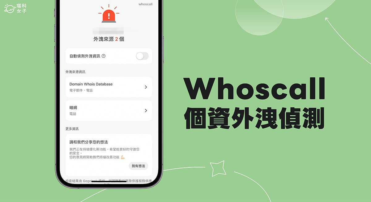 Whoscall 是一款受到許多用戶喜愛的來電辨識 App,可預先辨識陌生來電再決定是否接聽,還可以看到來電者是否是詐騙或者是廣告推銷號碼,而最近 Whoscall 更新後支援了一項「個資外洩偵測」功能,會透過你的電話號碼來檢查個資是否外洩,甚至也會列出外洩來源等資訊。