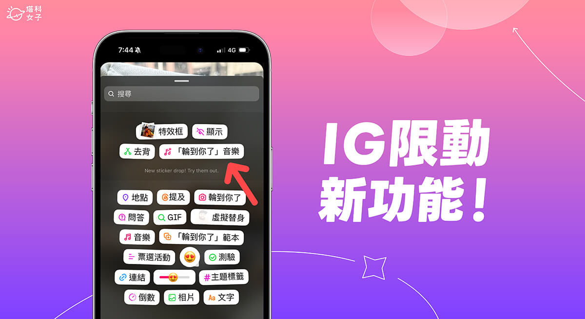 之前我們就很常在 IG 限時動態看到別人在玩「輪到你了」功能,例如有人會製作一張飲料店打卡清單範本,其他人只要點一下「輪到你了」按鈕就可以新增一張自己的版本,而現在「輪到你了」也支援「音樂」功能了,等於說我們可以製作一個跟音樂相關的主題範本,然後讓其他人透過這個全新的「輪到你了 音樂」功能來新增一首音樂。