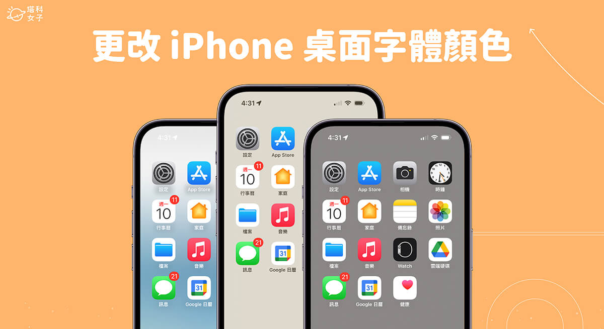 - 淺色桌布 = iPhone 桌面文字顏色變黑色