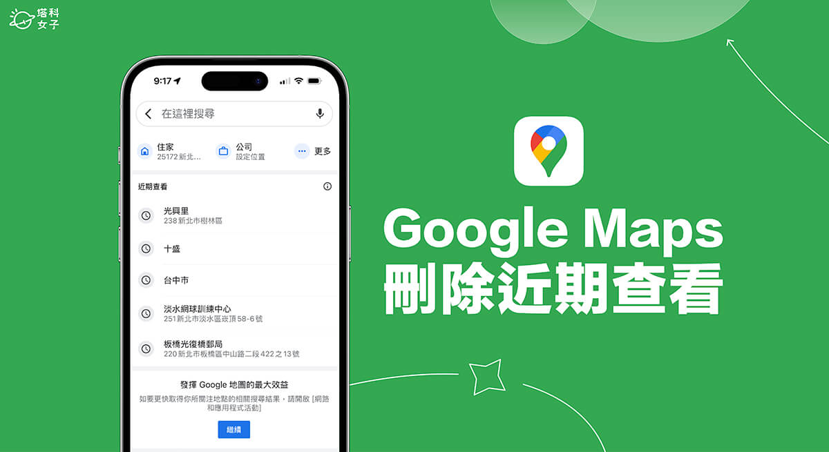 Google 為了方便用戶快速查看與導航之前搜尋過的地點,預設會將 Google Maps 搜尋紀錄儲存在「近期查看」欄位中,只要點一下 Google Maps App 裡的搜尋欄位即可顯示。