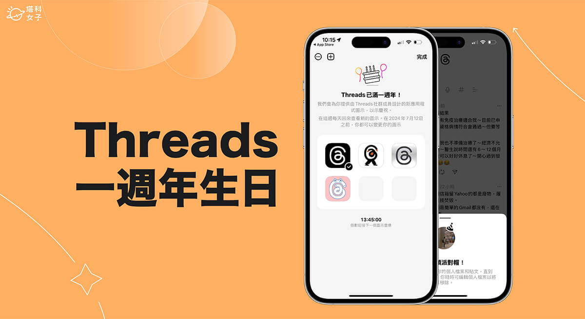 Threads 一週年生日快樂!如果你也是脆友,那別錯過 Meta 為 Threads 生日推出的兩款有趣新功能,即日起到 7/12 為止我們都可以套用有趣的 Threads 生日帽和自由更改喜歡的 Threads 圖示!