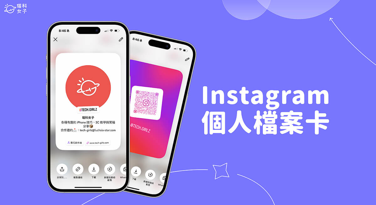 之前如果要分享自己或他人的 Instagram 帳號,通常都會直接複製個人檔案連結或是直接看帳號名稱,但如果你是創作者的話,很推薦你為自己製作 IG 個人檔案卡!簡單來說就很像你的 IG 名片一樣,上面會顯示你的 IG 帳號名稱和 QR Code,另一面則會顯示你的 IG 大頭貼、個人簡介內容、創作者類別及放置的連結,還可以下載成影片儲存,隨時都可以分享給其他人喔!