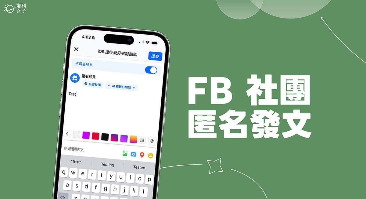 Facebook 社團能讓一群擁有相同興趣的人互相討論聊天,也能詢問特定主題或分享內容,不過如果你希望在社團中發佈 FB 貼文時,不要暴露你的個人身份,那我們可以善用 FB 匿名發文功能,發佈貼文時可選擇「不具名貼文」,這樣其他人就不會看到發文作者的名稱與大頭貼了。