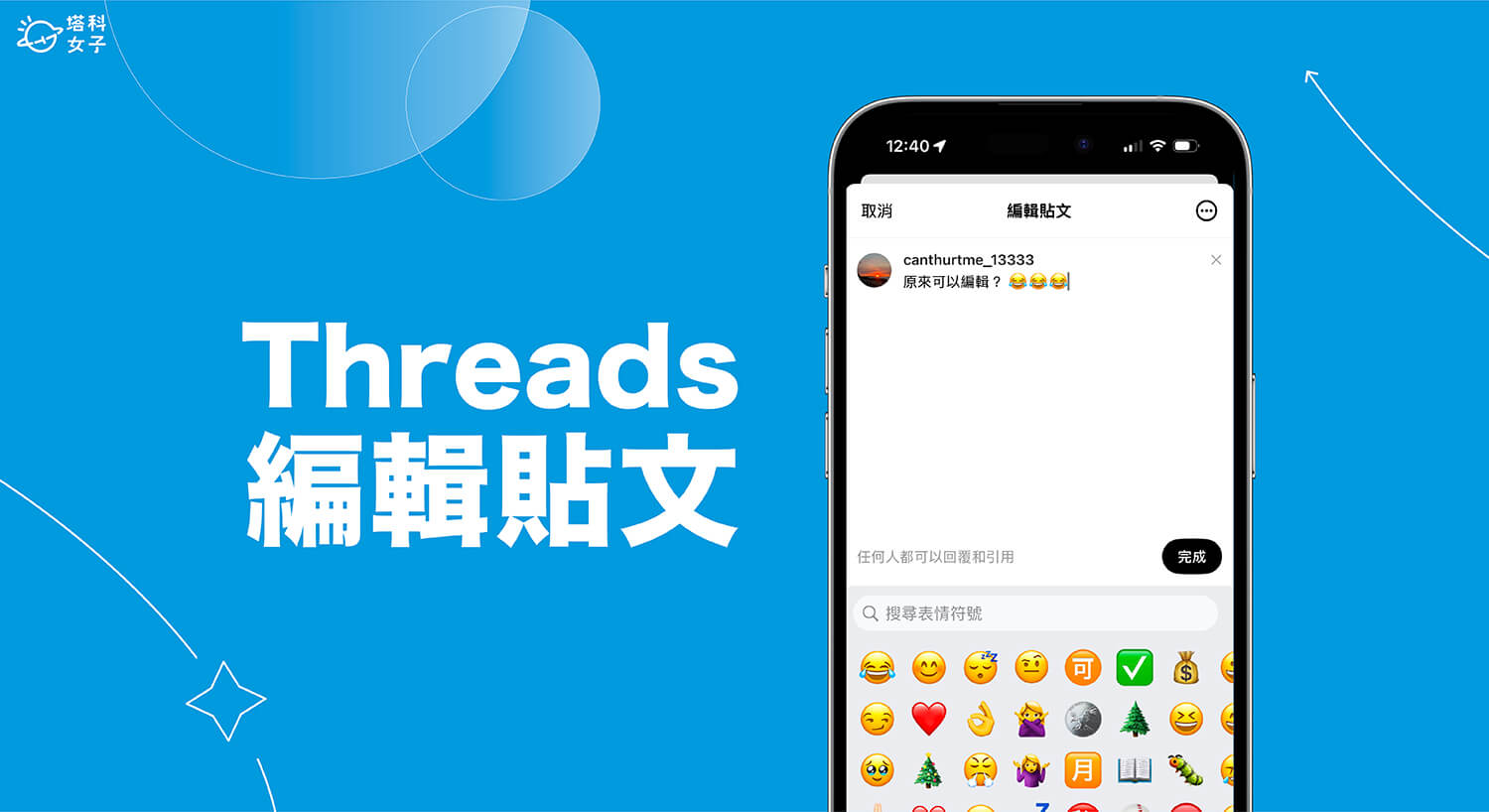 點選編輯後,直接輸入你想修正的內容,然後點一下「完成」就可以儲存了,這樣就輕鬆完成 Threads 貼文編輯的需求。