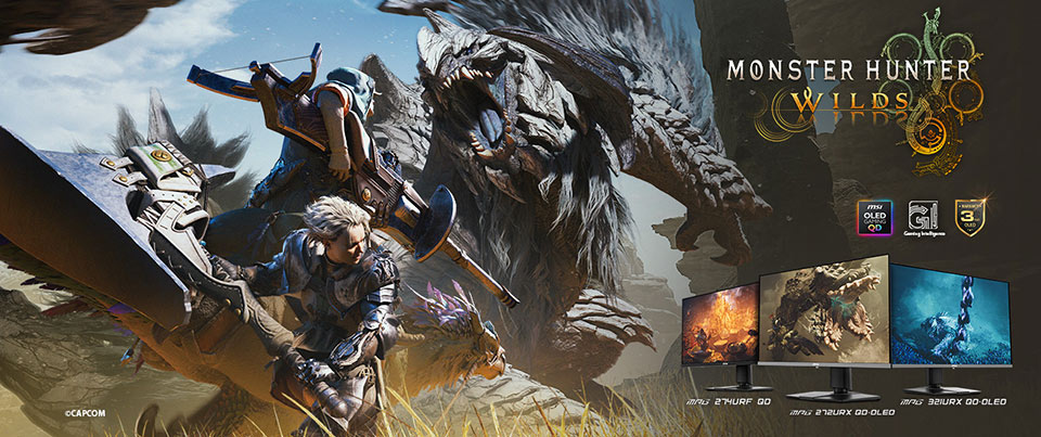 玩家引頸期盼的《Monster Hunter Wilds》將於 2 月 28 日推出,MSI 於 2 月 1 日起針對遊戲玩家透過指定 MSI 電競顯示器即可獲得獨家獎勵,捕獵魔物的冒險就在眼前,快來參加吧!