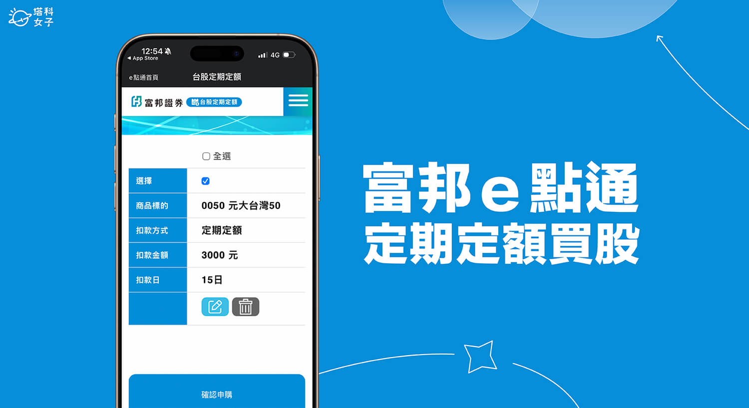 如果你是富邦證券用戶,想直接透過 App 快速設定定期定額買台股或美股,那可以參考本篇教學的三步驟去設定喔!非常方便好用,也不需要臨櫃辦理,且所有資訊都能在 App 裡隨時查看。