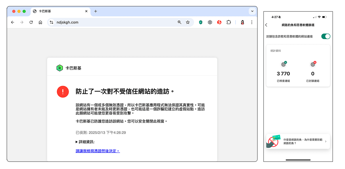 我們每天在手機和電腦上總是會點擊很多網址與連結,但其實有些惡意連結、詐欺網站中都隱藏著網路釣魚攻擊,可能會竊取使用者的資料,或是將惡意軟體植入到裝置中,而卡巴斯基專業版的「偵測惡意連結」功能就很實用。